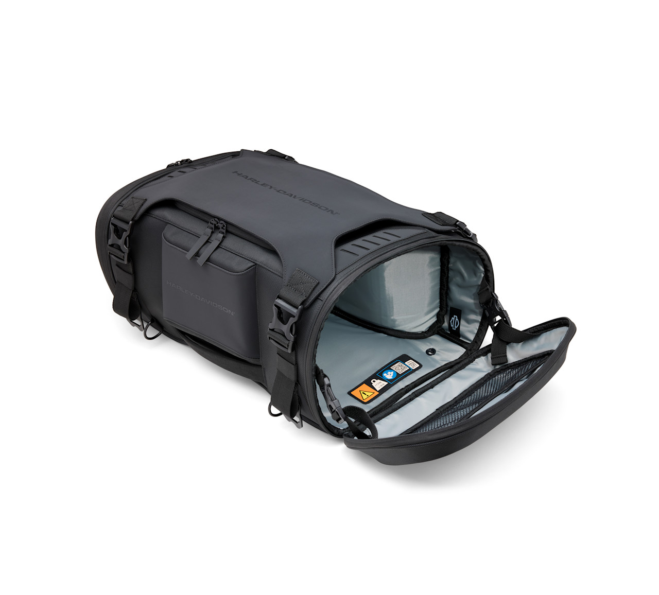 高視認性のグレーの内装により、暗い場所でもバッグの中身が見えます。