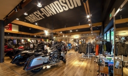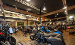 ハーレーダビッドソン宮崎の店内にはオリジナルのカスタムハーレーも展示しており、ドレスアップに最適なアクセサリーパーツやメンテナンスパーツ、そして様々なグッズなど豊富。