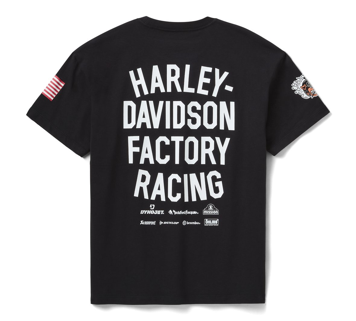 そしてバックには「HARLET-DAVIDSON FACTORY RACING」の大胆なグラフィックと名だたるスポンサー企業名がズラリとプリントされています。